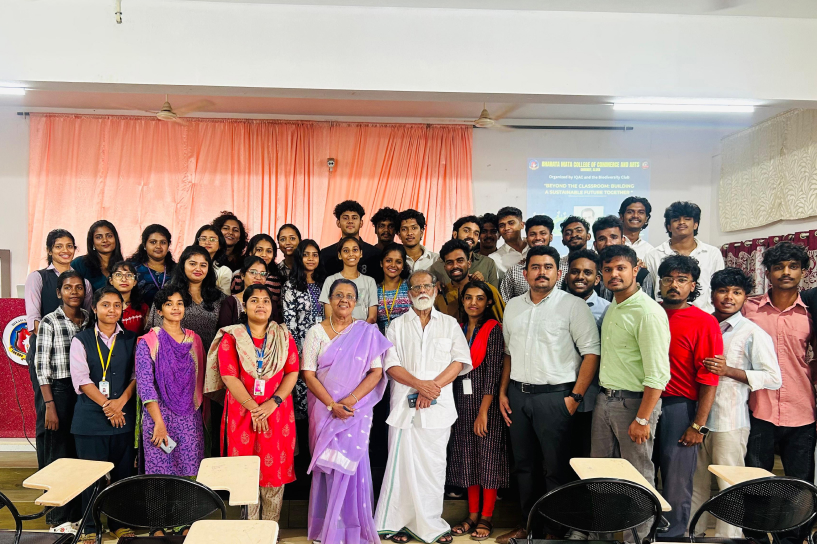 The Biodiversity Club at Bharata Mata College, Chunangamvely, was inaugurated as part of an initiative by the Department of Social Work and IQAC to foster environmental responsibility. The event, themed “Let’s Make the World Sustainable,” was organized to promote environmental awareness and a sustainable approach to life. The inauguration was done by Mr. Sreeman Narayanan, renowned for his expertise in the field of environmental science. Students from the BSW program of various colleges participated in the event.